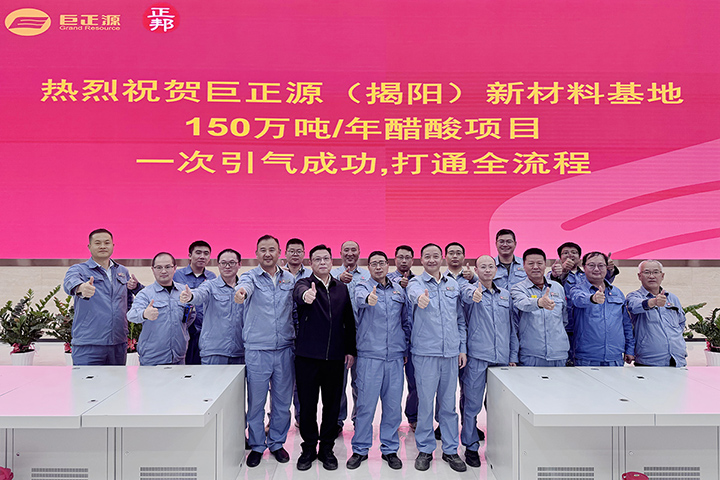 12月31日,巨正源(揭陽)新材料基地150萬噸/年醋酸項目順利完成全部調試程序,一次引入合成氣成功,打通全流程,正式進入試生產階段。廣物控股集團黨委委員、副總經理孔令灼蒞臨現場指導,并對試車安全工作作出重點部署。