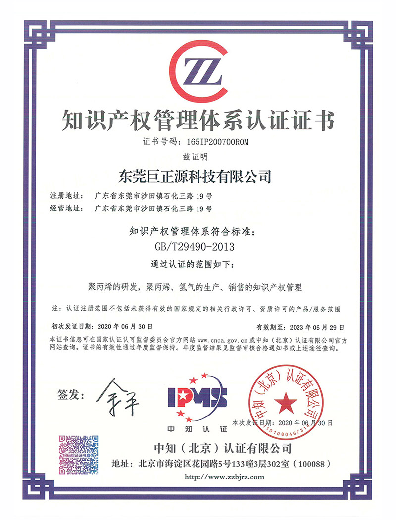 日前,巨正源科技公司順利通過了國家知識產(chǎn)權(quán)管理體系(GB/T 29490-2013)認(rèn)證,并取得《知識產(chǎn)權(quán)管理體系認(rèn)證證書》。這標(biāo)志巨正源科技公司知識產(chǎn)權(quán)管理進(jìn)入標(biāo)準(zhǔn)化、規(guī)范化、系統(tǒng)化管理的新高度。